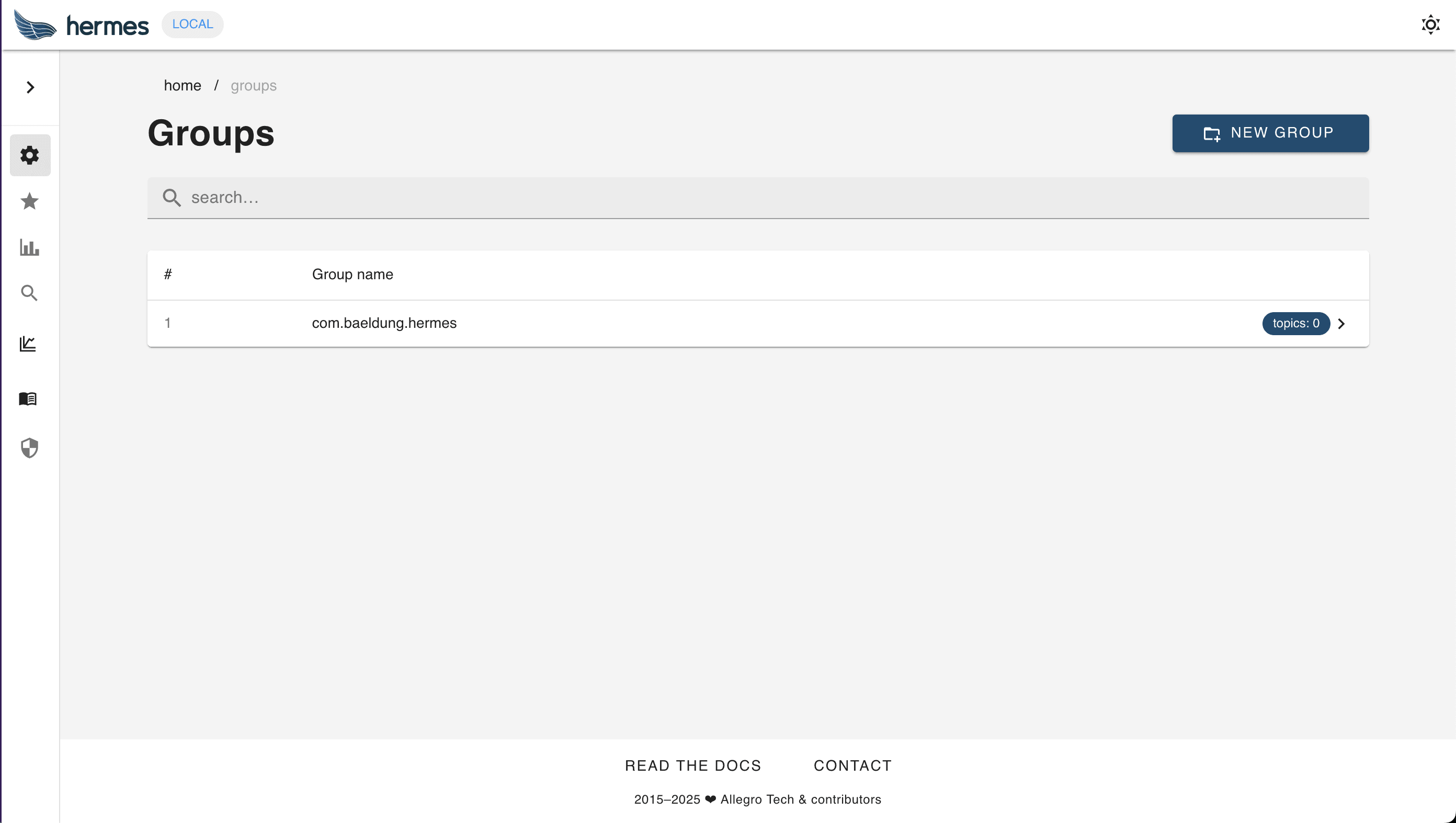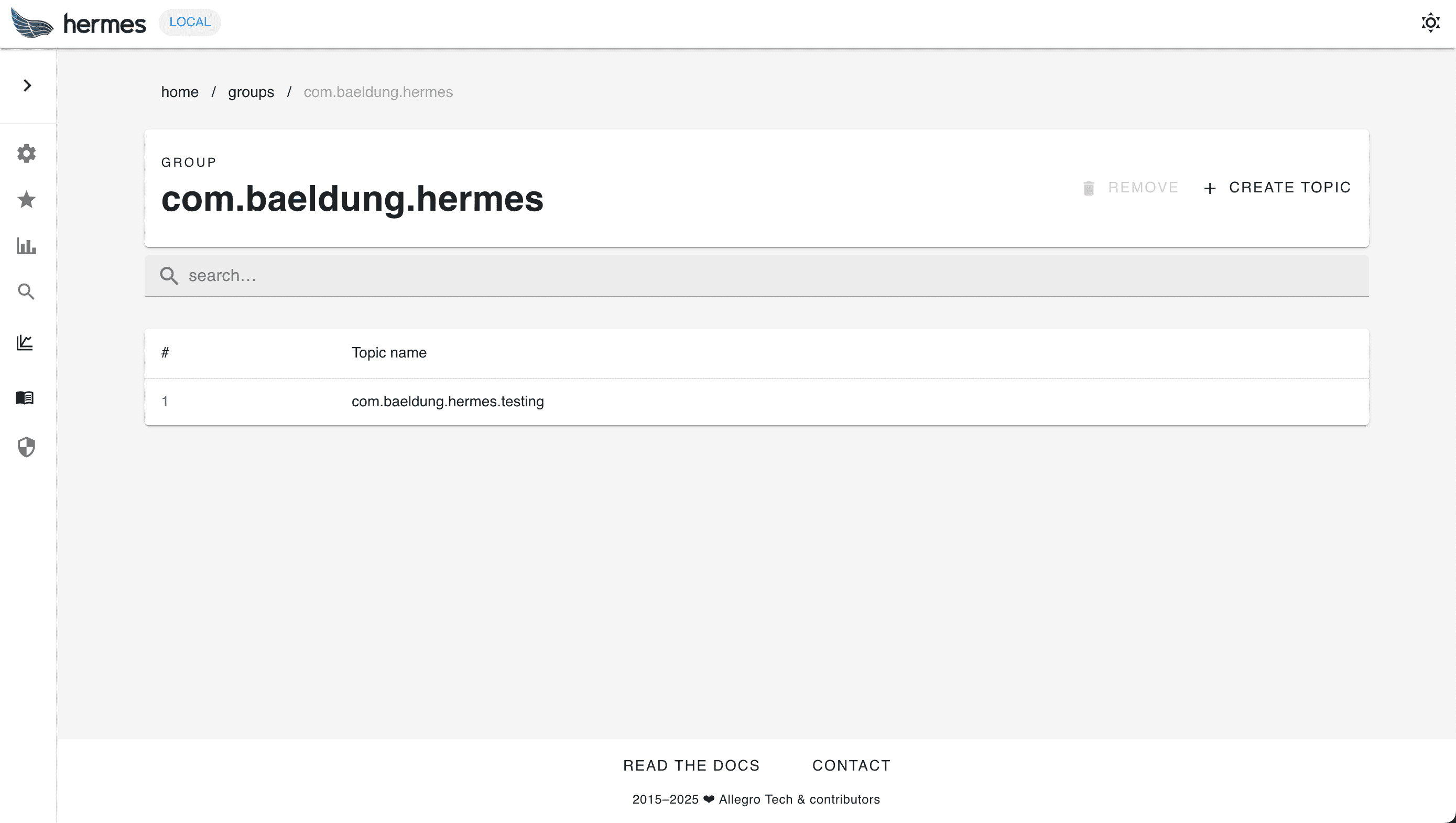 Hermes manages all of our messages in topics, which are combined into groups. We can manage all of this in the management console.
