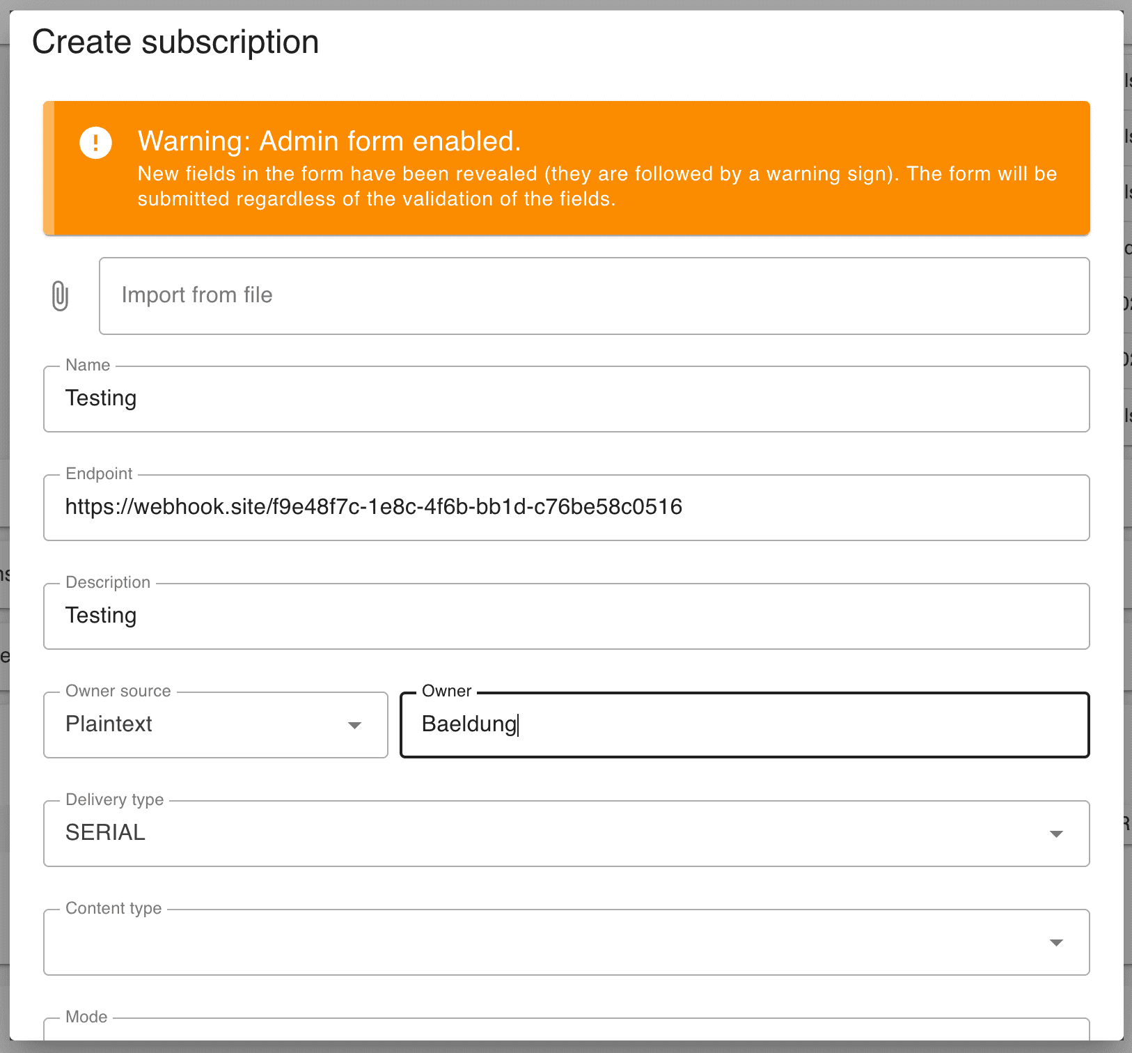 When creating a subscription, we’re required to fill out: