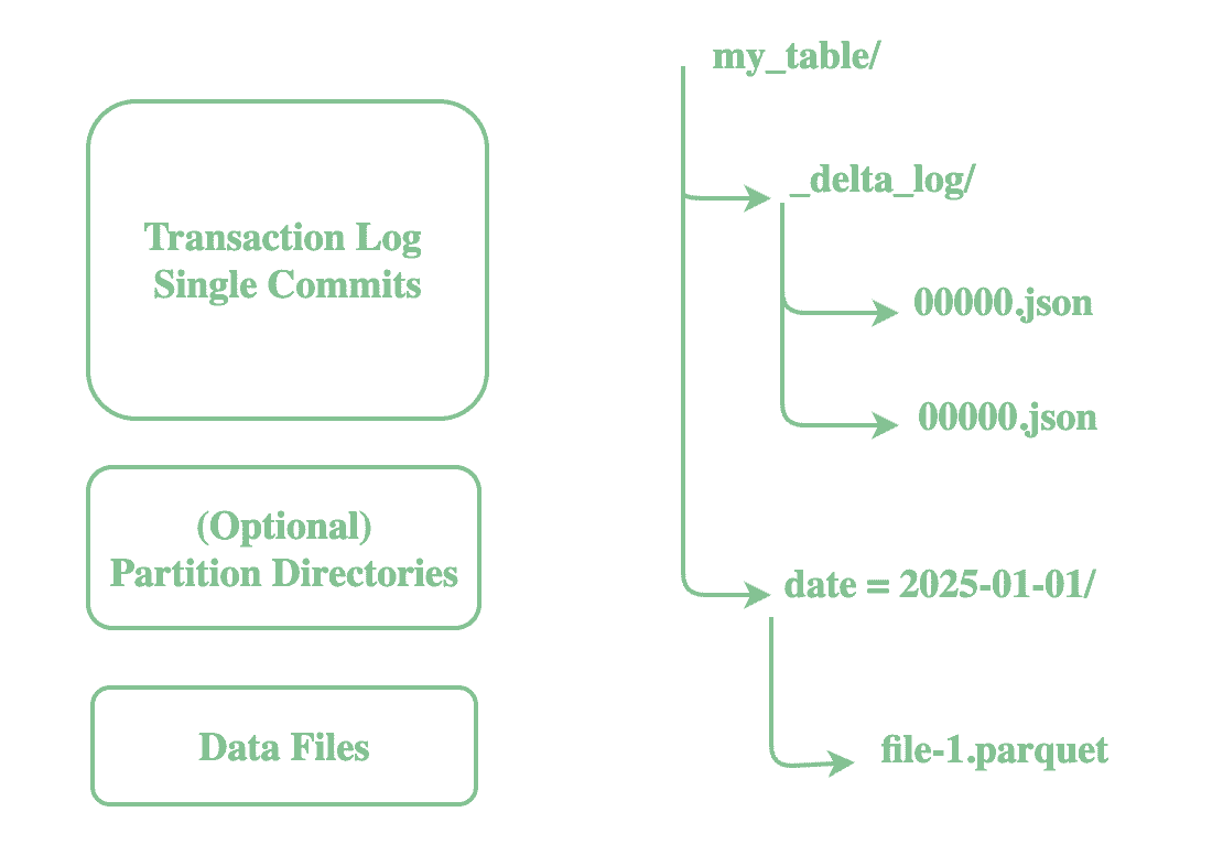 Parquet stores the actual data records, organized into partitions and often optimized for common query patterns. Moreover, these files remain compatible with any engine that can read Parquet, even without leveraging Delta Lake’s advanced features.