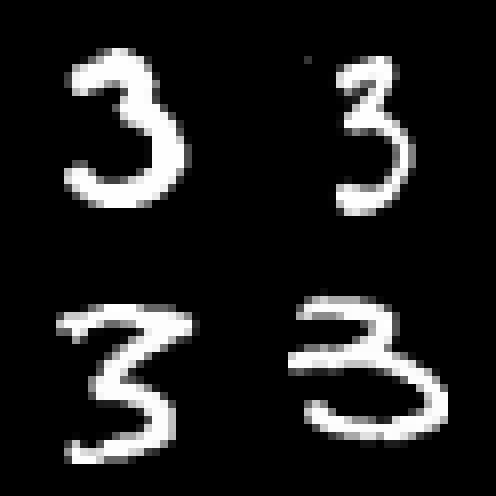 Now, let’s look at a list of handwritten images of the digit 3, taken from the MNIST test dataset: