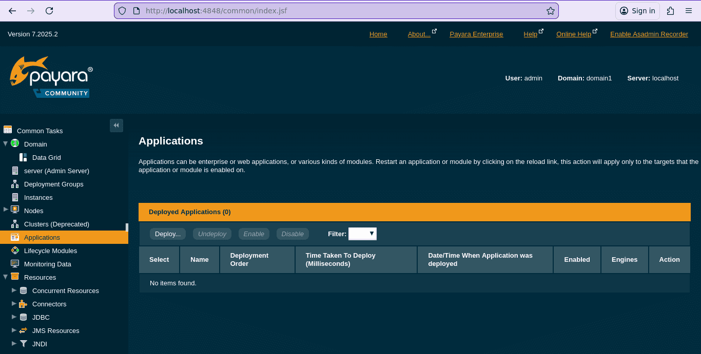 Payara Server provides multiple options for deploying applications. We can use the Admin Console or deploy applications directly using the asadmin command.