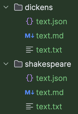 One of the advantages of reading a file to build a test object is that we can customise it from a template. For example, in our AllVersions test data, we have an .md, a .txt, and a .json of the same text, and we can use them to test conversions between them. However, while the .json matches the formatting of titles in the .md version, the .txt version has no formatting.