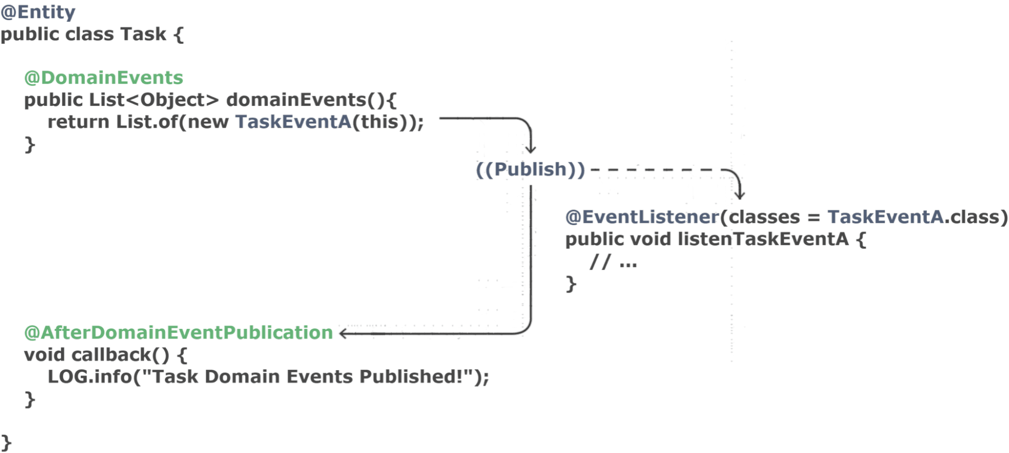 Spring Data also offers the @AfterDomainEventPublication annotation to define a callback method to be executed after all Domain Events are published.