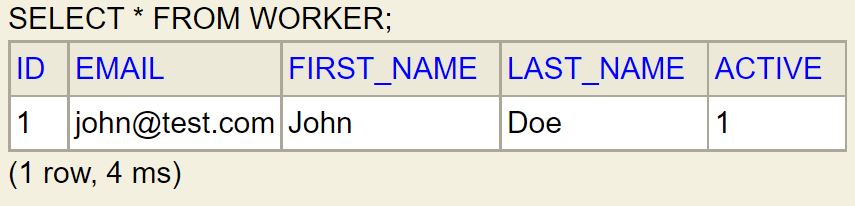 Let’s run the application, browse the H2 console, and query all entries in the WORKER table: